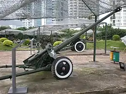 The 85-mm divisional gun D-44 (Russian: 85-мм дивизионная пушка Д-44) was a Soviet divisional 85-mm calibre field artillery gun used in the last action of World War II. It was designed as the replacement for the 76 mm divisional gun M1942 (ZiS-3). The gun is no longer in front-line service with the Russian Ground Forces, although some 200 of the Chinese Type 56 variant are still in service with the Pakistan Army.[4] Wartime service included use by communist forces during the Vietnam War[5] and by Arab forces during their conflicts with Israel.