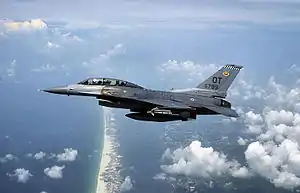 ![]() 85th TES F-16D Fighting Falcon over the northwest Florida coastline during an evaluation mission in 2004 | |