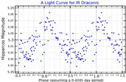 8 Draconis is the star's Flamsteed designation. It also received the variable star designation IR Draconis in 2000, after its variability had been discovered using Hipparcos photometry.[6]