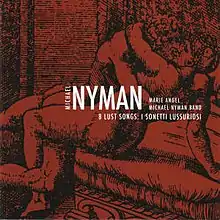 8 Lust Songs: I Sonetti Lussuriosi is a setting by Michael Nyman of 8 pieces of a collection of erotic poetry from Pietro Aretino’s I Sonetti Lussuriosi. The songs depict a man and woman's sexual desires for one another in varying contexts. Marie Angel premiered the piece, voicing both the male and female characters, including a voyeuristic old woman, with the Orchestra di Santa Cecilia, conducted by the composer, on 4 October 2007 at the Arsenale in Venice, Italy, on a commission from Venice Biennale. A studio recording with the Michael Nyman Band was released on compact disc 29 July 2008. It is Nyman's 59th album, and the twelfth on his own label.