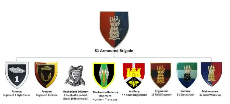 Headquartered in Pretoria, 81 Armoured Brigade consisted of the following units: