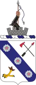 - The shield is silver (white) with a blue bend, the Infantry colors.