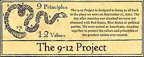 The name "9-12" symbolized both the day after the September 11, 2001 (written as September 12, or 9-12), and the project's "nine principles and twelve values."[6] According to the website, the 9 Principles and 12 Values were derived from the principles of the Founding Fathers: