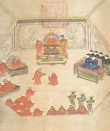 In 1810, he was enthroned at the Potala Palace on the Golden Throne of the Ganden Po-drang Government. This same year the elderly Regent, Ta-task Nga-wang Gon-po died and the De-mo Tul-ku Nga-wang Lo-zang Tub-ten Jig-me Gya-tso (d. 1819) was appointed to replace him.[2]