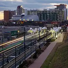 9th Street is a light rail station in Charlotte, North Carolina. The at-grade dual side platforms are a stop along the Lynx Blue Line and serves Uptown Charlotte's First Ward as well as First Ward Park and the UNC Charlotte Center City Campus.