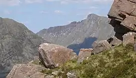 A' Mhaighdean is one of the least accessible of the munros in northern Scotland. It is 8 miles (13 km) north of Kinlochewe but most easily accessible from Poolewe, taking a private road South East (pedestrian & bicycle access only) to Kernsary. A good track then leads to the causeway between the Fionn Loch and Dubh Loch. Follow the path eastwards to about the 1,000 feet (300 m) level and cross the Allt Bruthach an Esain to gain the North West ridge of the mountain.