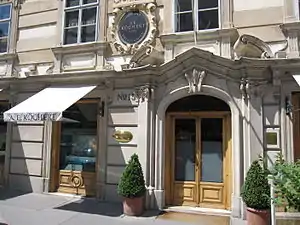 The Frenchman Emmanuel Pioté (or Peyote[2]) opened a goldsmith shop in Vienna in 1814, the same year the Congress of Vienna took place, giving a great visibility to the newly-founded shop. In 1819, Heinrich Köchert joined in as an associate (he was from a German family of carpenters[2]), and married Pioté's step-sister. By 1827, the Prince Metternich was the most prestigious client of the goldsmith shop Pioté and Köchert. When the emperor Francis II contracted Pioté and Köchert to create a golden box for the ambassador, the shop became the first official jeweler to the King («Kaiserlich-Königlicher Hofjuwelier»). The goldsmiths also made the 27-star crown for Empress Elisabeth of Austria (the «Sisi Sterne») that launched a new fashion in Europe. Alexander Emmanuel Köchert was tasked in 1844 with adding pearls to the Imperial Crown of Austria. The shop was located in the Palais Pallavicini before it moved to Hoher Markt 15 in 1873 in a shop designed by Theophil Hansen.[1][3][4] Pioté retired in 1848 and Köchert became the sole owner.[5]