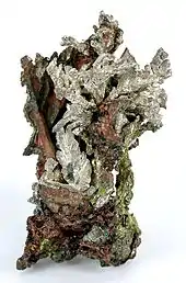 The mineral collection was established in the 19th century, and by 1890 numbered 27,000 specimens.[2] The museum currently houses over 25,000 specimens from around the world.[1] Many of these specimens are native generally to Michigan, and more specifically to the Lake Superior region. The Copper Pavilion just outside is home to the Guinness World Record holder for largest boulder of copper weighing 19 tons and pulled from the bottom of Lake Superior.[3]