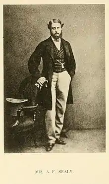 Sealy was born in Clevedale near Bristol to Major General Benjamin Dowden Sealy of the Honorable East India Company and his wife Mary Annie Byers. He went to study under Rev. G. Despard, of Redland, Clifton and Rev. C. Pritchard at Clapham before joining as a pensioner at Gonville and Caius College, Cambridge in 1850. He received a BA in 1854 and an MA in 1857 with a Junior Optime in the Mathematical Tripos and a second class in the Natural Science Tripos. He made collections of insects and birds eggs which were presented to the Cambridge University museum. He was a founding member of the British Ornithologists' Union.[1] He moved to India to become the founding principal at the Rajah's High School, Ernakulam while also being a deacon at Madras from 1893. He established a zoology museum at the Maharaja's College in 1874. He also helped found the Ernakulam Public Library in 1870.[2] He also served as a Chaplain at St Francis Church, Cochin and later became a Director of Public Instruction for South India during which time he passed rules to stop corporal punishment of students by teachers, only allowing headmasters from ordering it under special circumstances.[3] He was elected Fellow of the Madras University. He died at Cochin from apoplexy.