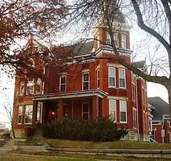The A. T. Averill House is a historic building located in Cedar Rapids, Iowa, United States. Local architects Sidney Smith and W.A. Fulkerson designed this 21/2-story, brick Late Victorian home. It was completed in 1886 for farm implement dealer Arthur Tappan Averill. This is a more restrained version of the High Victorian style.[2] The house features a truncated hip roof, a 21/2-story polygonal bay, and a rectangular tower set on the diagonal. The carriage house/barn behind the house is of a similar design, but older.[2] The house was listed on the National Register of Historic Places in 1978.[1]