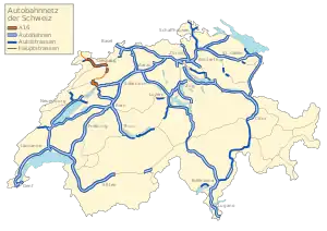 The A16, a motorway in north-central Switzerland, is a divided freeway connecting the border to France to the A5 motorway, 84 kilometres (52 mi) to the south on the Swiss plateau.[1]