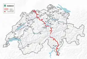 ![]() Location of the A2 within Switzerland | |