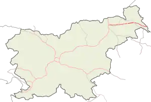 The A5 motorway (Slovene: avtocesta A5, Pomurski krak) of Slovenia is 79.6 km long. It begins at the Dragučova interchange on the A1 motorway north of Maribor and ends at the Hungarian border at Pince, continuing on in Hungary as the M70 motorway. It connects Maribor with Budapest.