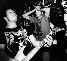 Perhaps ABC No Rio's best-known project is the Punk/Hardcore Collective. Since December 1989, ABC No Rio has hosted weekly punk and hardcore matinees on Saturday afternoons. They go back to the initiative of Mike Bromberg, former singer of NYHC band SFA, who suggested running hardcore shows to the building collective and organized the first shows.[13] For most of the 1980s, the NYC punk/hardcore scene had been focused around the Sunday matinees at CBGB's. These shows devolved into weekly bloodbaths due to gang violence and, therefore, in November 1989, CBGB's stopped hosting them. The new shows at ABC No Rio were carefully set up to be devoid of the violence, homophobia, sexism, and machismo that had taken over the CBGB's matinees, and to this day follows a policy of booking only independent (i.e., non-major label) bands that do not in any way promote sexism, racism and homophobia.[14] ABC No Rio is also one of the few places in New York City to host regular punk/hardcore shows that are all-ages.[15]