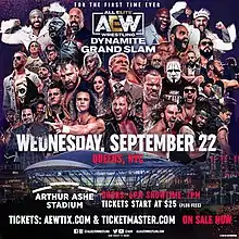 The 2021 Grand Slam was the inaugural Grand Slam professional wrestling television special produced by All Elite Wrestling (AEW). It was held on September 22, 2021, at the Arthur Ashe Stadium in Queens, New York. The two-part event was broadcast on TNT as special episodes of AEW's weekly television programs, Wednesday Night Dynamite and Friday Night Rampage—Dynamite aired live while Rampage aired on tape delay on September 24. A total of 14 matches were contested. Five aired live on Dynamite while six aired on Rampage, which was expanded to two hours for the Grand Slam special. Three dark matches also occurred before the live event, which were shown on AEW's YouTube show, Elevation, on September 27.