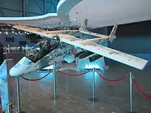 The Ahrlac features a twin-boom, single-pusher-engine, high-mounted forward-swept wing configuration, giving the aircraft an unconventional external appearance and providing for excellent external visibility.[8] It is powered by a single Pratt & Whitney Canada PT6A turboprop engine; it has a top speed of 310 mph, roughly double that of most helicopters and similar to larger military UAVs such as the General Atomics MQ-9 Reaper, along with a flight endurance of seven hours.[19] It is flown by a crew of two, who are seated in tandem configuration, both being provided with Martin-Baker ejection seats and HOTAS (hands on stick-and-throttle) control functionality. The narrow airframe is composed of a combination of metal and composite construction and is designed to provide maximum crew visibility.[27][19] The aircraft overall is claimed to be inexpensive and easy to manufacture, AHRLAC's CEO, Dr Paul Potgieter, has contrasted the ease of assembly to that of a Meccano set.[2] The Ahrlac has been designed to be capable of operating from austere runways and rough fields; it also possesses STOL (Short Take Off/Landing) and rapid deployment capabilities.[9][19][1]