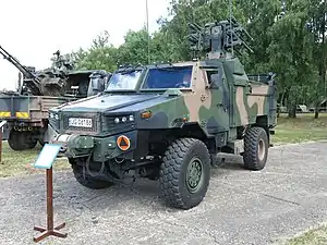 The AMZ Żubr is an infantry mobility vehicle produced by AMZ-Kutno which is used by the Polish military. "Żubr" is also the Polish word for wisent. It was designed by AMZ-Kutno and began production in 2008. The standard Żubr variant, the Żubr MRAP, is based on the Iveco EuroCargo vehicle, which is produced in Poland.
