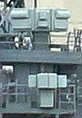 - AN/SLQ-32(V)2 – Initially the most common variant, the (V)2 expanded on the (V)1's capabilities with new receiving antennas for increased radio frequency coverage. It added the ability to detect high frequency targeting and fire-control radars, providing early warning against an imminent anti-ship missile attack.[4] The (V)2 was installed on frigates, destroyers, and 270-foot (82 m) Coast Guard cutters. Many (V)2 suites have been upgraded to (V)3.