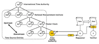 • Time source entity - Most countries have an official source of time and this has been codified over the last hundred years through any number of Mutual Recognition Agreement's and Legal Metrological Agreements (see http://www.oiml.org for more information on Legal Metrology). Why this is important is now that the Internet has made it possible to reach directly into the laboratory that operates the official source of time for that jurisdiction, the many layers of "middlemen” who stood between the end-user and the source of time are now gone. As such, time that can be shown as traceable to the specific national measurement institute or master clock of that jurisdiction is the only source that provides the approved "Time Calibration Source" for X9.95. Examples include NIST in the US and Bureau International des Poids et Mesures (BIPM). Other regulatory frameworks also require that time that is moved through the Network Time Protocol ntp is properly certified and authenticated meaning unauthenticated use of time from any provider will fail X9.95 requirements for obtaining time in a provable manner.