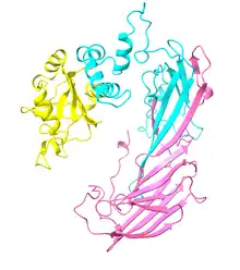 MuD consists of 490 amino acids that interact to form a tertiary structure with three domains.[11][12]
