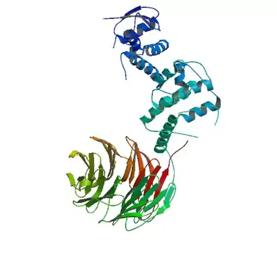 - Li D, Roberts R (2001). "WD-repeat proteins: structure characteristics, biological function, and their involvement in human diseases". Cell. Mol. Life Sci. 58 (14): 2085–97. doi:10.1007/PL00000838. PMID 11814058. S2CID 20646422.