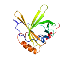 ApoD concentration in human plasma varies between 5 and 23 mg/100 ml.[30] In the nervous system, the ApoD mRNA is expressed by fibroblasts, astrocytes and oligodendrocytes[31][32][33] As a glycoprotein with a peptide signal, ApoD is secreted. Yet it can also be actively reinternalized. The transmembrane glycoprotein Basigin (BSG; CD147) was identified as an ApoD receptor.[34] BSG is a membrane glycoprotein receptor, member of the immunoglobulin family, involved in several pathologies such as cancer and Alzheimer's disease.[35]