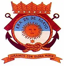 ARA Veinticinco de Mayo (V-2) was an aircraft carrier in the Argentine Navy from 1969 to 1997. The English translation of the name is Twenty-fifth of May, which is the date of Argentina's May Revolution in 1810.
