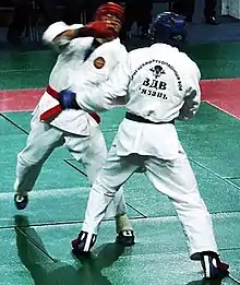 ARB (Russian: Армейский Рукопашный Бой; Armeyskiy Rukopashniy Boy; 'Army Hand-to-Hand Combat') is a Soviet martial art which was developed for the military in the late 1970s and tested with the Soviet Airborne Troops, utilising both striking and grappling techniques with an emphasis on stand-up fighting and use of throws to take an opponent down quickly. It incorporated many functional elements from an arsenal of army-style hand-to-hand combat and martial arts styles from around the world, and has been intended for use in a combat environment. It is a relatively modern and quickly developing style of martial arts, and, as a combat sport, it has become popular for its full-contact sparring while offering a relatively modest risk of injury.[1] Contrary to Combat Sambo contests, which are being held at a standard wrestling mat, ARB contests require a 10×10 m (33×33 ft) tatami-like squared area.