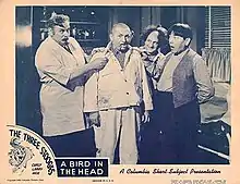 A Bird in the Head is a 1946 short subject directed by Edward Bernds starring American slapstick comedy team The Three Stooges (Moe Howard, Larry Fine and Curly Howard). It is the 89th entry in the series released by Columbia Pictures starring the comedians, who released 190 shorts for the studio between 1934 and 1959.