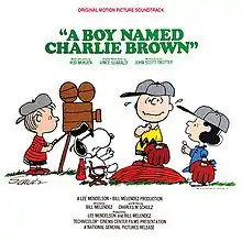 A Boy Named Charlie Brown is the debut theatrical film based on the Peanuts comic strip by Charles M. Schulz.[1] For the music score, producer Lee Mendelson recruited jazz pianist Vince Guaraldi, who had previously composed uptempo jazz melodies for the first six Peanuts television specials as well as the unaired documentary of the same name. Guaraldi did not compose new songs for the film, but instead fitted established compositions with a more theatrical treatment featuring lusher horn-filled arrangements. Instrumental tracks used in the film included new versions of the songs "Skating", "Baseball Theme", "Charlie Brown and His All-Stars", "Oh, Good Grief", "Air Music", "Blue Charlie Brown", and several variations of the Peanuts franchise theme song, "Linus and Lucy". Guaraldi also resurrected the non-Peanuts song "Lucifer's Lady" from his album The Eclectic Vince Guaraldi (1969), retitled "Kite Music (Lucifer's Lady)".[2]