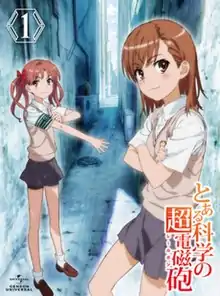 ![]() Blu-ray and DVD Volume 1 cover featuring Kuroko Shirai (L) and Mikoto Misaka (R) | |