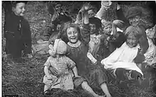 Children playing in freshly mowed hay