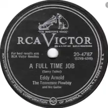 "A Full Time Job" is a song written by Gerry Teifer, sung by Eddy Arnold, and released on the RCA Victor label (catalog no. 20-4787). In July 1952, it peaked at No. 1 on Billboard's country and western jockey chart (No. 3 best seller and juke box).[1] It spent 18 weeks on the charts and was ranked No. 15 on Billboard's 1952 year-end country and western best seller chart and No. 21 on the year-end juke box chart.[2]