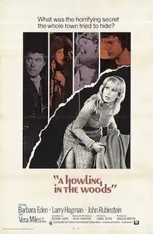 A Howling in the Woods is a 1971 American made-for-television thriller film directed by Daniel Petrie and starring Barbara Eden, Larry Hagman, John Rubinstein, and Vera Miles. The teleplay was written by Richard DeRoy based on the 1968 novel by Velda Johnston. Its plot follows a housewife vacationing in the woods who experiences mysterious howling noises in the night. The film premiered on NBC as the NBC World Premiere Movie on November 5, 1971. It was released theatrically in Europe.
