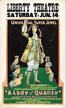 A Lady of Quality is a 1924 American silent historical drama film directed by Hobart Henley and starring Virginia Valli. Produced and distributed by Universal Pictures, it was based on the 1896 novel A Lady of Quality by Frances Hodgson Burnett. Previous adaptations include the film A Lady of Quality (1913).[1][2]