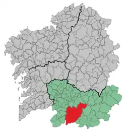 Baltar, Os Blancos, Calvos de Randín, Porqueira, Rairiz de Veiga, Sandiás, Sarreaus, Trasmiras, Vilar de Barrio, Vilar de Santos and Xinzo de Limia.