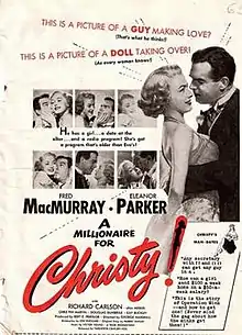 A Millionaire for Christy is a 1951 comedy film directed by George Marshall, and starring Fred MacMurray and Eleanor Parker. The film is a screwball comedy, in which Christy Sloane (Parker) is a legal secretary from San Francisco who is sent to Los Angeles to inform radio host Peter Lockwood (MacMurray) that he has just inherited $2 million.