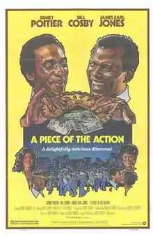 A Piece of the Action is a 1977 American crime comedy film directed by and starring Sidney Poitier and co-starring Bill Cosby. It was the third film pairing of Poitier and Cosby, following Uptown Saturday Night (1974) and Let's Do It Again (1975). The films are considered a trilogy, even though the actors play characters with different names in each film. It was also Poitier's last acting role for more than a decade, as he focused his attentions on directing.