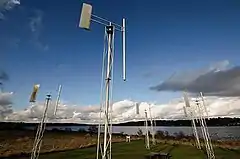 A Sound Garden is an outdoor public art work in Seattle, Washington, United States. It is one of six such works on the National Oceanic and Atmospheric Administration (NOAA) campus, which lies adjacent to Warren G. Magnuson Park on the northwestern shore of Lake Washington.[1][2] Designed and built by sculptor Douglas Hollis from 1982 to 1983, the sound sculpture is composed of twelve 21-foot (6.4 m) high steel tower structures, at the top of each of which hangs an organ pipe attached to a weather vane that produces soft-toned sounds when stirred by the wind.[1][2][3]