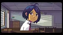 The player is able to interact with people, objects, and cats throughout the game.[2][3] The game features a number of smaller minigames that help ground the game in its place and time, like practicing football and dodging falling objects with button inputs; fighting minigames which involve pressing a sequence of buttons in a time limit to attack and pressing the button when the moving bar hit the target, but most of the game is at a slower pace and involves exploring and talking with people through point and click gameplay.[2][3] The game also features a number of cats, which the player can pet and name.[3]