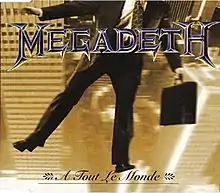 "A Tout le Monde" is a song by American heavy metal band Megadeth, featured on their 1994 studio album Youthanasia. It was released as a single in February 1995 through Capitol Records. The song was later remade and reissued as "À Tout le Monde (Set Me Free)", featuring Cristina Scabbia of Lacuna Coil, on Megadeth's 2007 studio album United Abominations. The song's chorus, "à tout le monde, à tous mes amis, je vous aime, je dois partir" ("to the whole world, to all my friends, I love you, I have to go"), prompted controversy after accusations that it was pro-suicide.