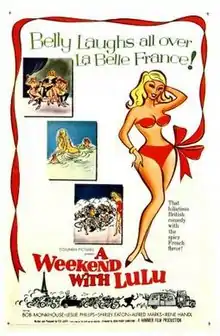 A Weekend with Lulu is a 1961 British comedy film directed by John Paddy Carstairs and starring Bob Monkhouse, Leslie Phillips, Alfred Marks, Shirley Eaton and Irene Handl.[1][2]