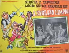 A sablazo limpio (A Quick Saber Slash) is a 1958 Mexican historical-comedy film directed by Fernando Cortés and starring Marco Antonio Campos and Gaspar Henaine as the double act Viruta y Capulina, and Lucho Gatica with Carmela Rey. Set during the era of the Spanish viceroyalties, the film follows the adventures of two clumsy blacksmiths who become the servants of a masked-hero in disguise who is willing to uncover the uncontrolled spending and injustices of a governor and his military captain.