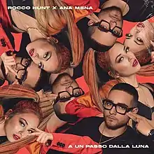 "A un passo dalla luna" is a 2020 Italian language single of Italian rapper Rocco Hunt and Spanish singer Ana Mena released on 3 July 2020. It is a reggaeton hit released on RCA and Sony. It reached the top of the Italian Singles Chart and spending 9 weeks at the top starting 24 July 2020. The Italian version also charted in Switzerland reaching number 31. A Spanish language version "A un paso de la luna" was launched in Spain and Spanish speaking countries.