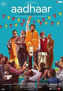 Aadhaar is a 2019 Indian Hindi-language dramedy film directed by Suman Ghosh. The film is written by Amitosh Nagpal and Suman Ghosh. Amitosh has also written dialogues and lyrics for the film.[1] Produced by Manish Mundra under his banner Drishyam Films, the film stars Vineet Kumar Singh, who is the first one in his village to get his Aadhaar card made.[2] Raghubir Yadav, Saurabh Shukla and Sanjay Mishra appear in supporting roles.[3] The film had its premiere at the 24th Busan International Film Festival under the section 'A Window on Asian Cinema'.[4] It was supposed to be released in India this 5 February 2021, but it was postponed.[5][6]
