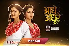 Aadhe Adhoore is an Indian television series which aired on Zindagi from 14 December 2015 to 12 April 2016.[2][3] The story revolved around Jassi who lives in rural Kapurthala in Punjab with a loving mother-in-law and her brother-in-law as her husband works abroad. The show touched on themes of unrequited love and adultery.[4][5] Despite a complex storyline and well-received acting performances, the show was cancelled after viewers thought the show depicted a bad woman in Jassi.[6][7]