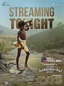 Aakashavaani (transl. Radio) is a 2021 Indian Telugu-language slice-of-life drama film directed by debutant Ashwin Gangaraju. It features Samuthirakani, Vinay Varma, Teja Kakumanu and Prashanth in prominent roles. The film tells the story of tribal people in a remote location of Andhra Pradesh who treat a radio as a talking God. The music is composed by Kaala Bhairava with editing by A. Sreekar Prasad. Initially scheduled for a theatrical release, the film was released on the streaming platform SonyLIV on 24 September 2021 owing to the COVID-19 pandemic.
