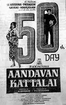 Aandavan Kattalai (transl. God's command) is a 1964 Indian Tamil-language film directed by K. Shankar and produced by P. S. Veerappa. Music was by Viswanathan–Ramamoorthy. The film stars Sivaji Ganesan and Devika, with J. P. Chandrababu, K. Balaji, S. A. Ashokan, A. V. M. Rajan and Pushpalatha in supporting roles. It was released on 12 June 1964.