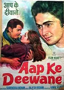 Aap Ke Deewane (transl. Crazy for You) is a 1980 Indian Hindi-language romance film, produced by Vimal Kumar under the Film Krafts banner, presented by Rakesh Roshan and directed by Surendera Mohan. It stars Rishi Kapoor, Rakesh Roshan and Tina Munim, while Jeetendra has given a guest appearance and the music was composed by Rajesh Roshan.