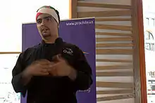 Aarón and his twin brother Rodrigo, an attorney in New York City, were born in 1976, in Chihuahua, Mexico to Zarela Martínez, a restaurateur and the author of several cookbooks, and Adolfo Sanchez and later moved to El Paso, Texas.[5][6] He began cooking at an early age, helping his mother prepare traditional Mexican foods for her catering business.[7] In 1984, the family moved to New York, and his mother launched the acclaimed Café Marimba, where Sánchez began to cook in a professional kitchen. At age 16, Sánchez's mother sent him to New Orleans to spend the summer working with Chef Paul Prudhomme.[8] In 1994, Sánchez graduated from Dwight School, and began to work full-time for Prudhomme in New Orleans. Sánchez was married to singer Ifé Mora from 2009 until 2012. He has a son named Yuma.[8] On episode 21 of MasterChef season 9, he revealed that his mentor was Jonathan Waxman.[9]